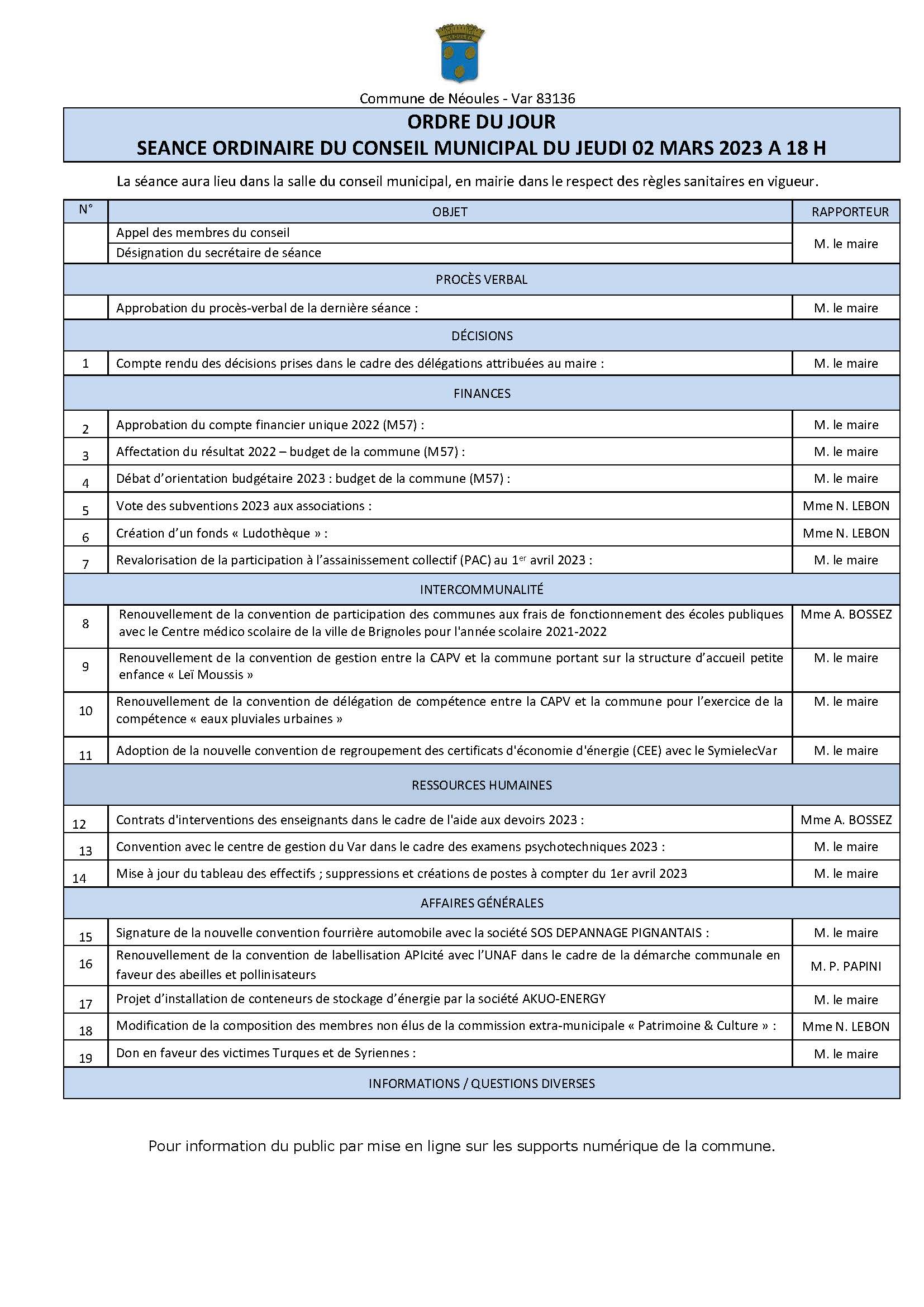 - Ordre du jour du conseil municipal du 2 mars 2023