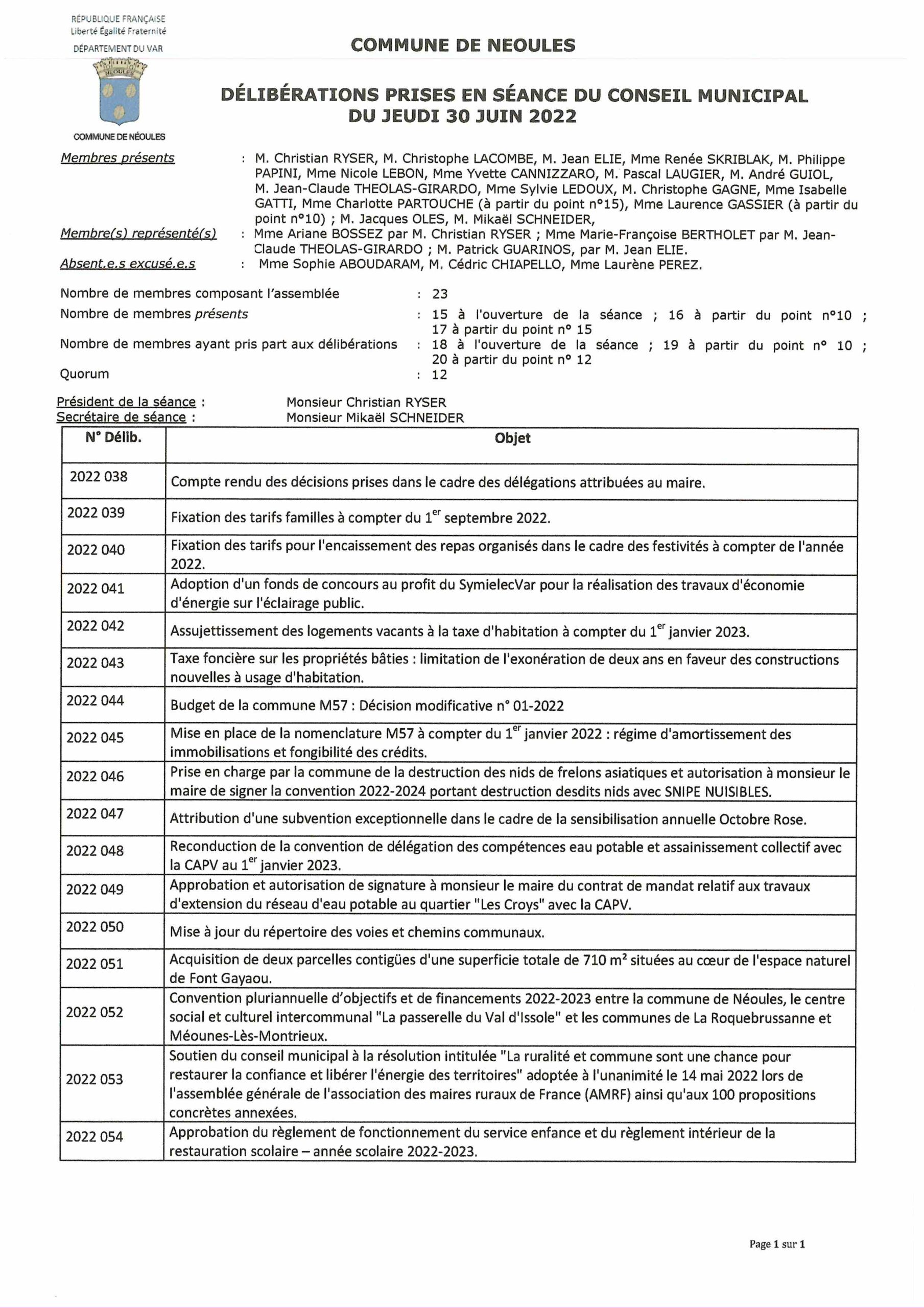- Ordre du jour du conseil municipal du 30 juin 2022
