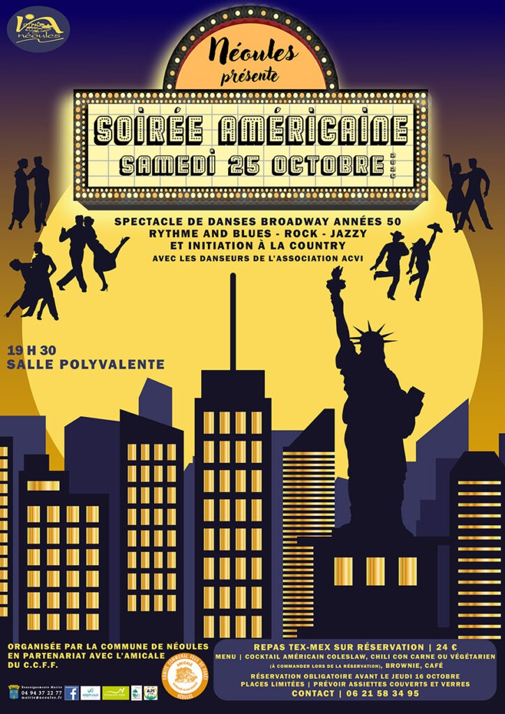 La commune de Néoules, en partenariat avec l’amicale du C.C.F.F, vous propose une soirée à l’américaine !