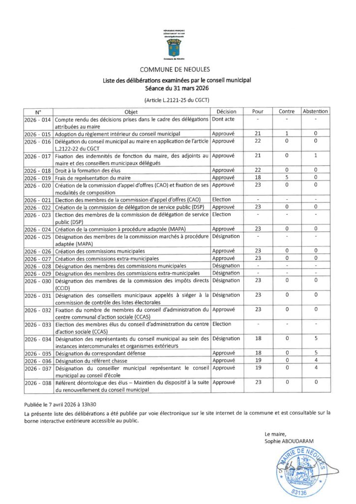 Procès-verbal du conseil municipal du 20 mars 2026 approuvé en séance du 31 mars 2026 7 avril 2026 Lire l'article »