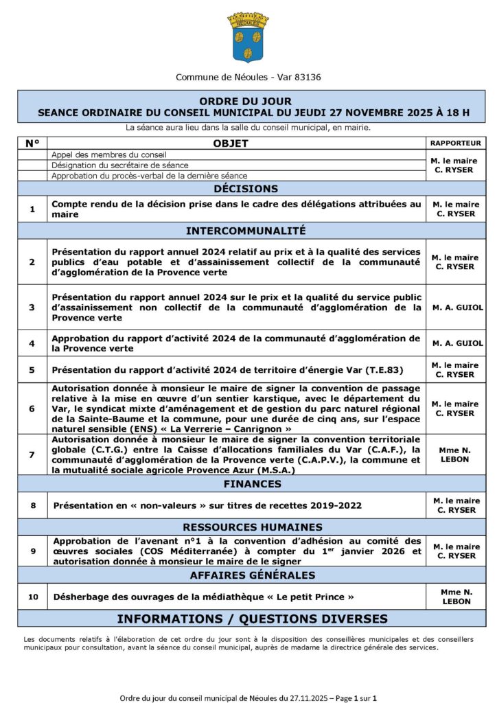 Accueil > Actualités > Conseil Municipal > Ordre du jour du conseil municipal du 27 novembre 2025