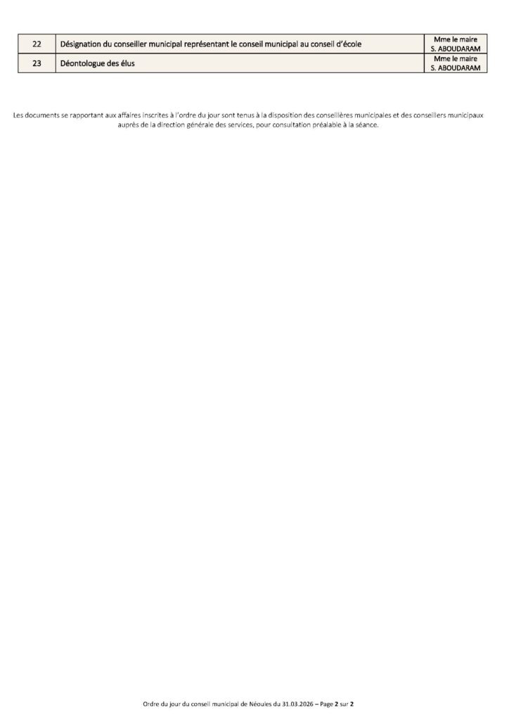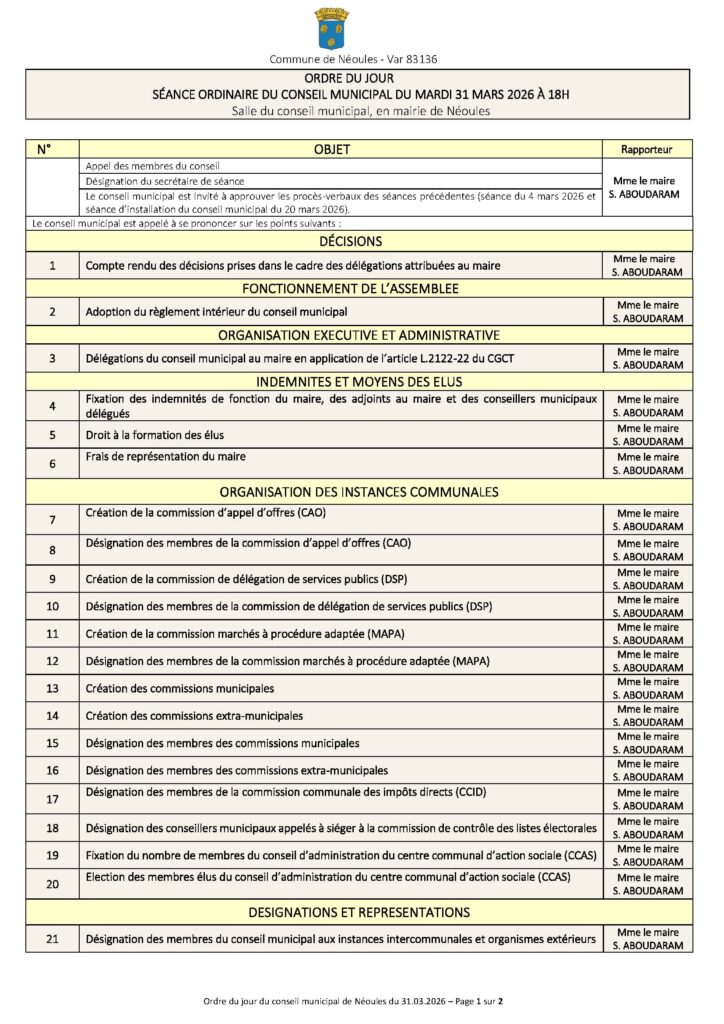 Vous êtes ici : Accueil > Actualités > Conseil Municipal > Ordre du jour du conseil municipal du 31 mars 2026