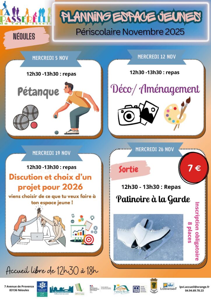Découvrez toutes les activités périscolaires organisées pour les jeunes pour les mois de novembre et décembre 2025 !