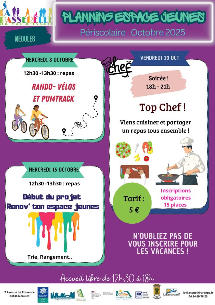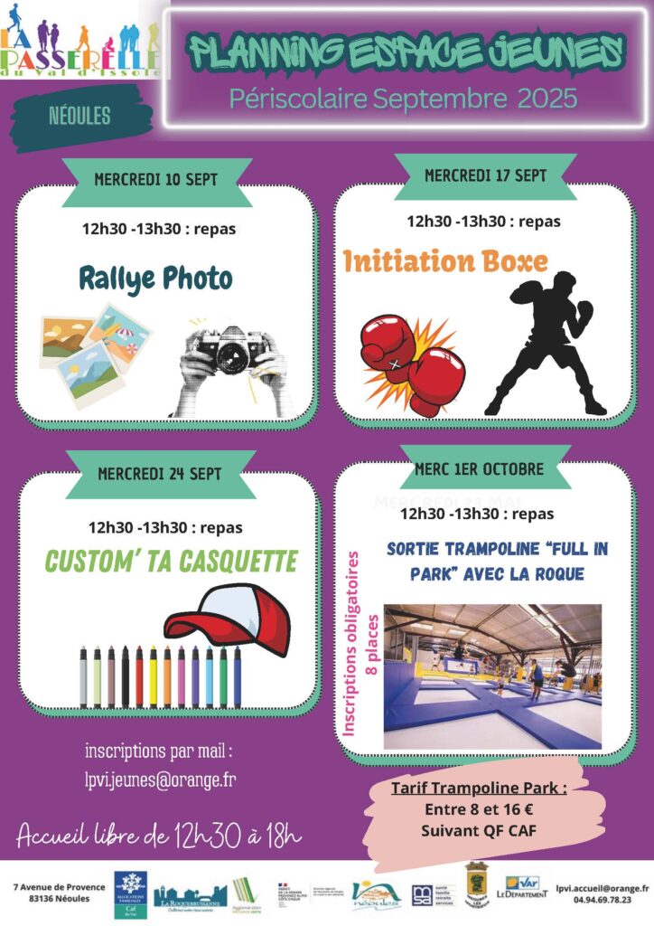 Découvrez toutes les activités périscolaires organisées pour les jeunes sur les mois de septembre et octobre 2025 !