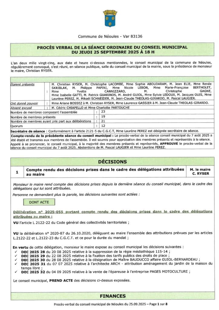Procès-verbal du conseil municipal du 25 septembre 2025