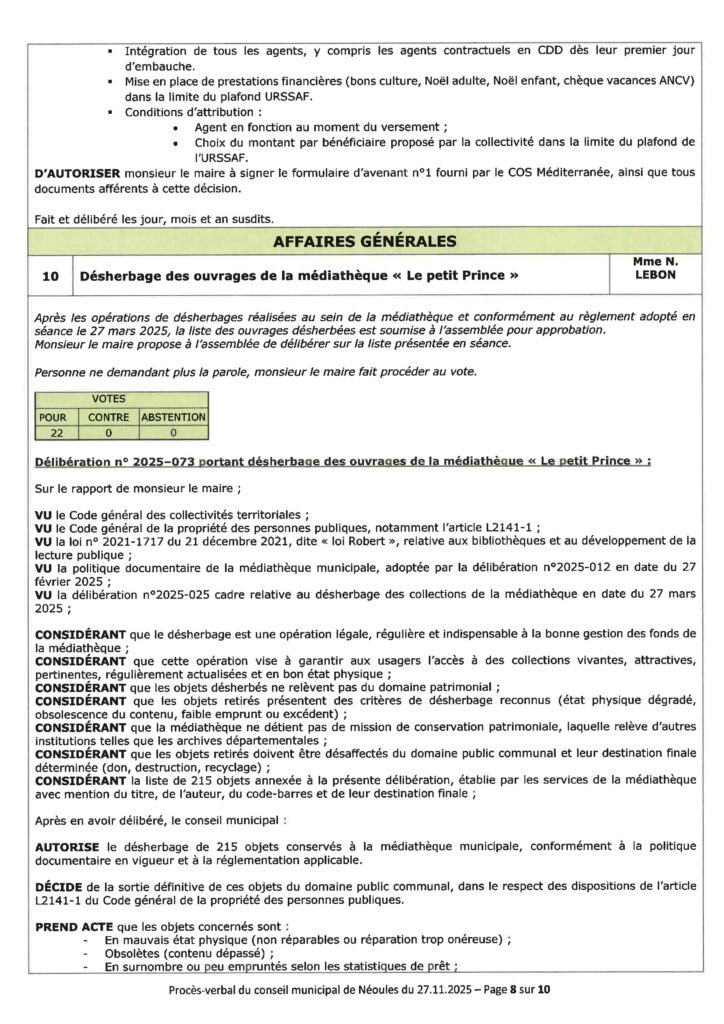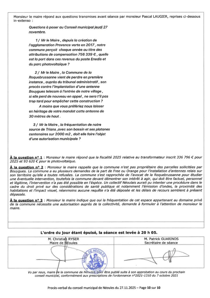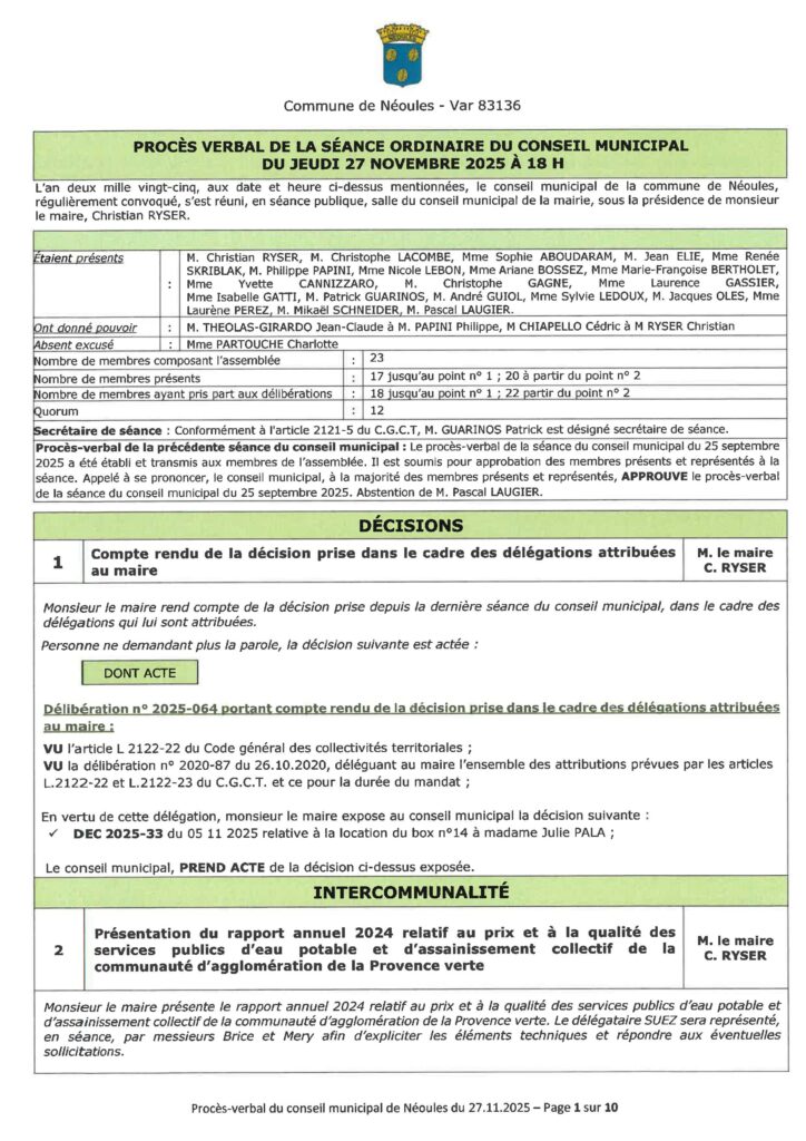 Procès-verbal du conseil municipal du 27 novembre 2025