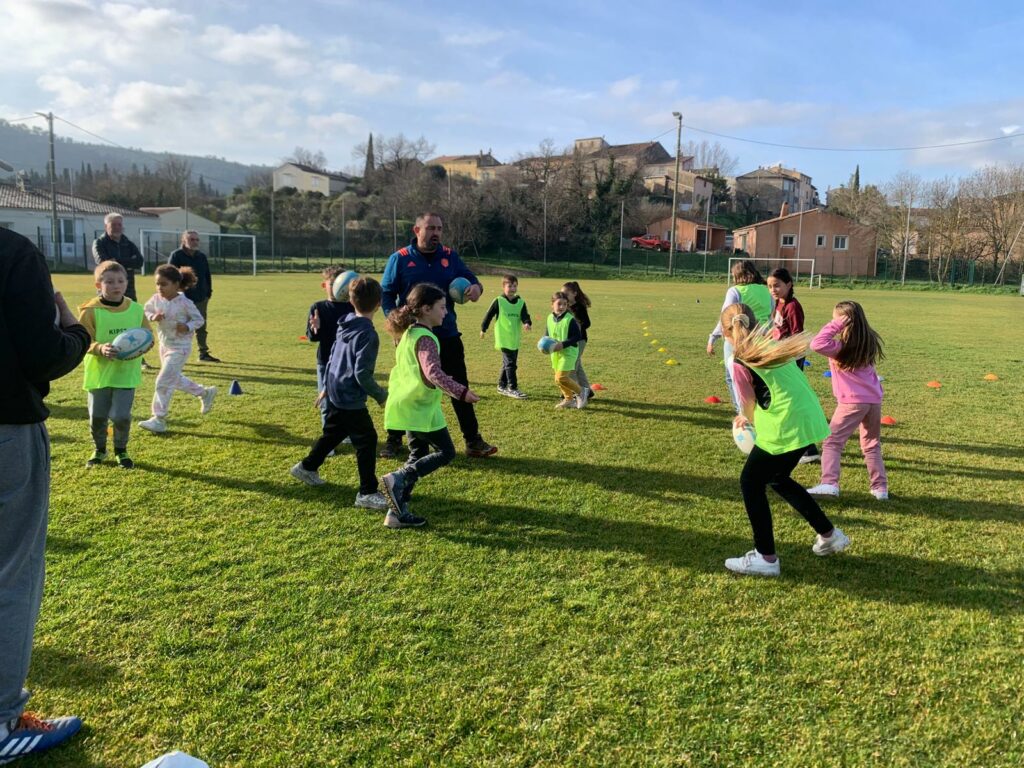 Pour lancer cette action, une formation a été organisée et animée par Jean Dominique Pujol, CTC (Conseiller Technique des Clubs) de la Ligue Sud et responsable du secteur Centre Var qui a réuni l’équipe enseignante ainsi que les animateurs du service enfance, en partenariat avec le Rugby club Val d’Issole (R.C.V.I.).
