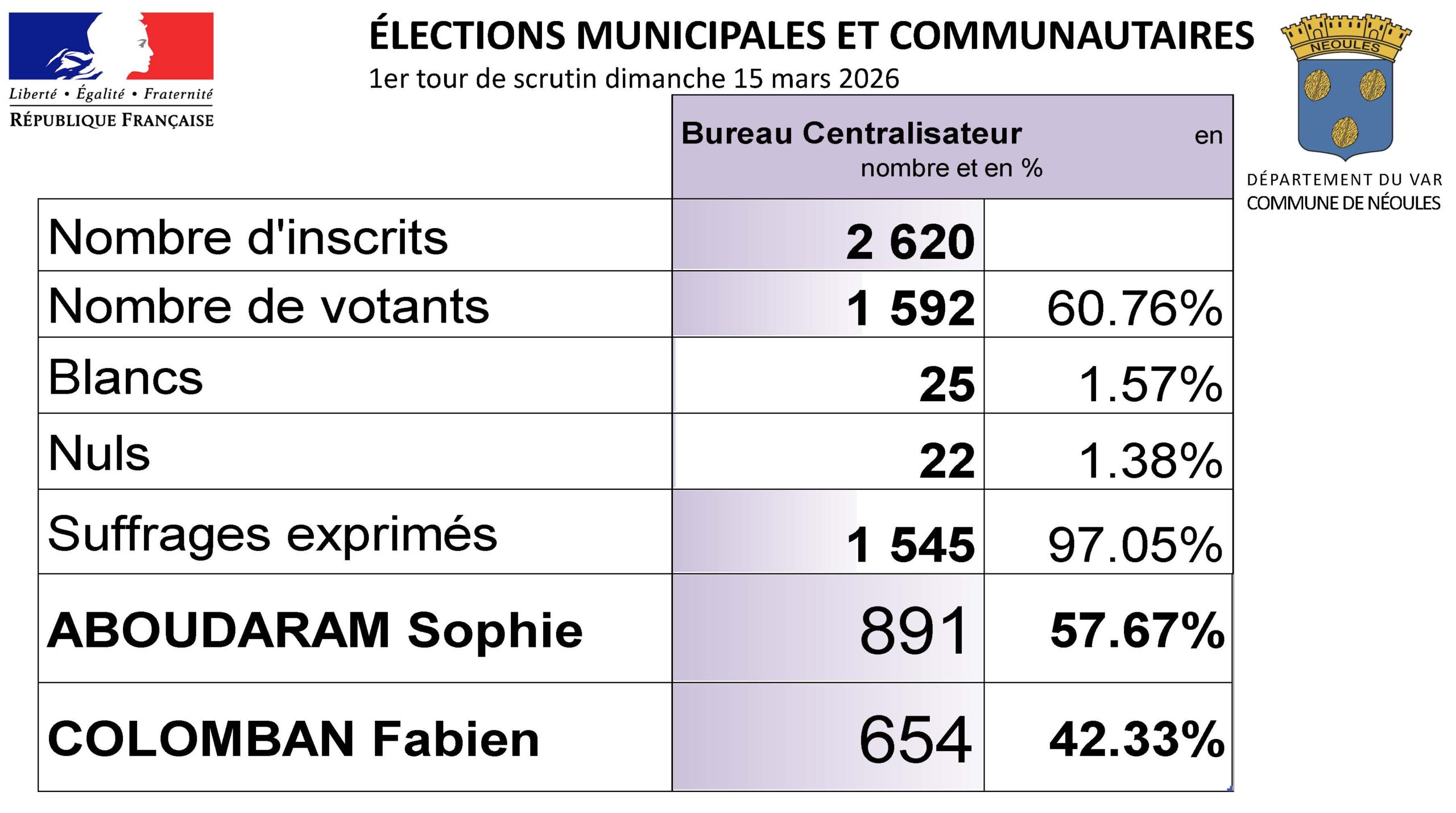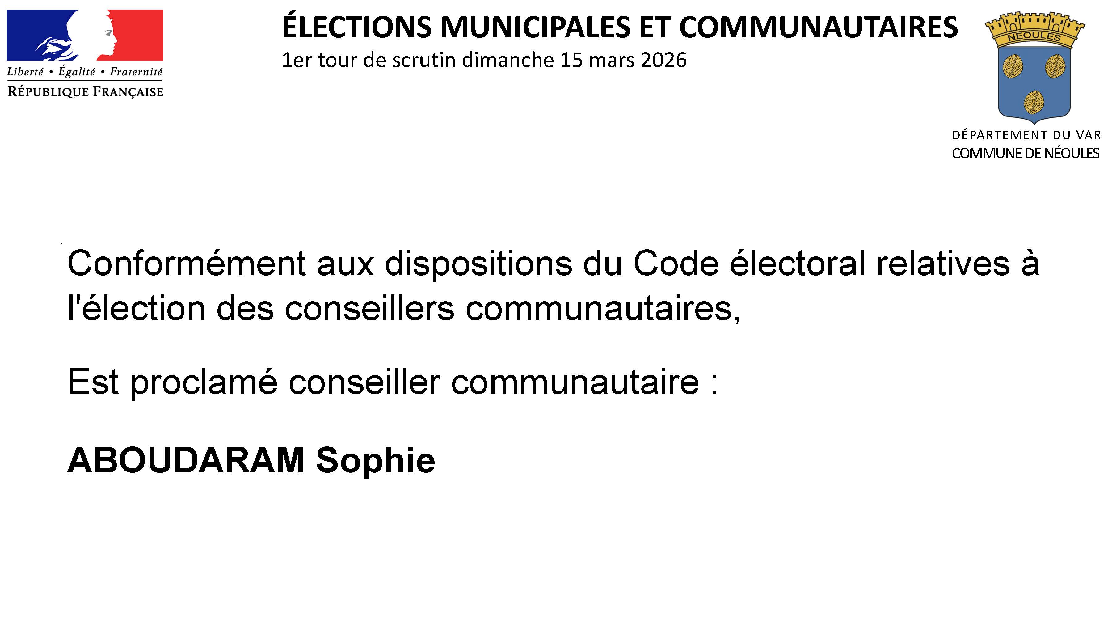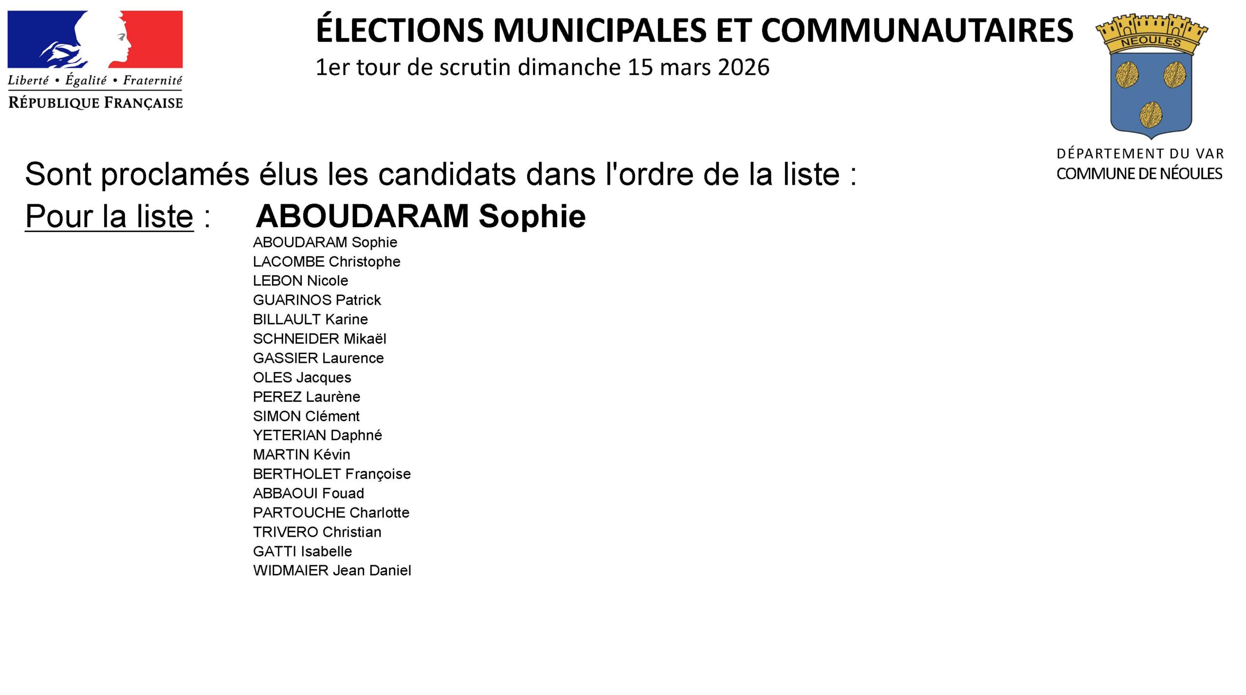 Vous êtes ici : Accueil > Actualités > Conseil Municipal > Résultats des élections municipales et communautaires | Scrutin du 15 mars 2026