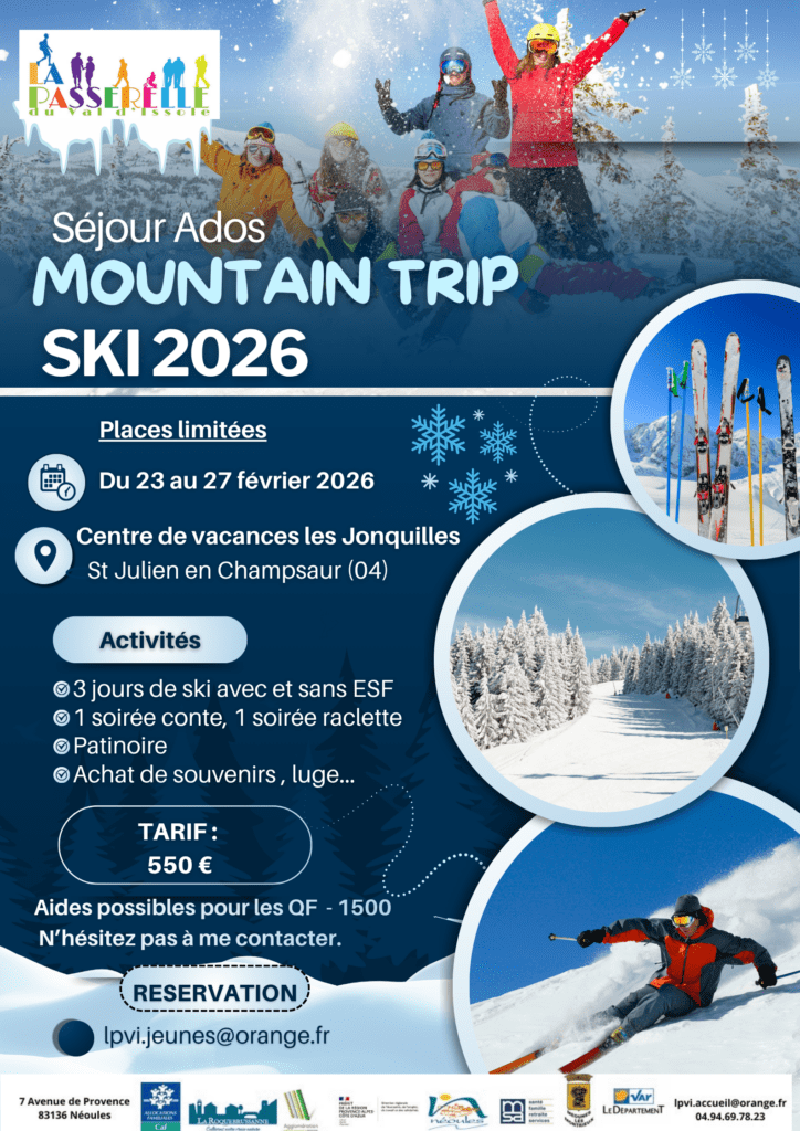 Un séjour ski à Saint Julien en Champsaur (04) est proposé aux ados du 23 au 27 février 2026 par l’espace jeunes.