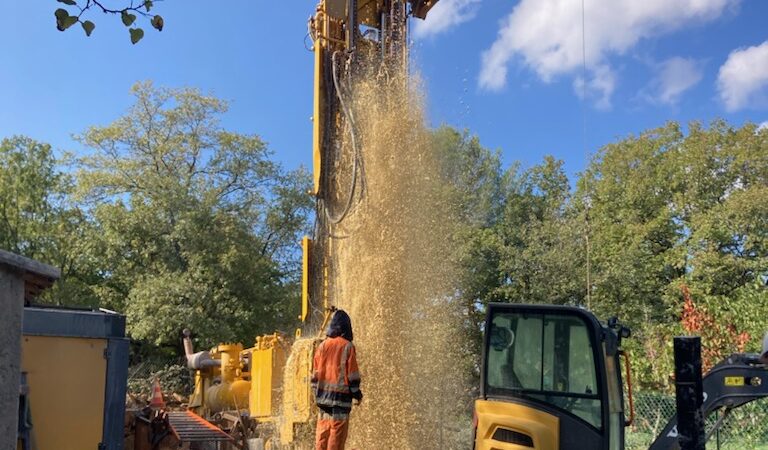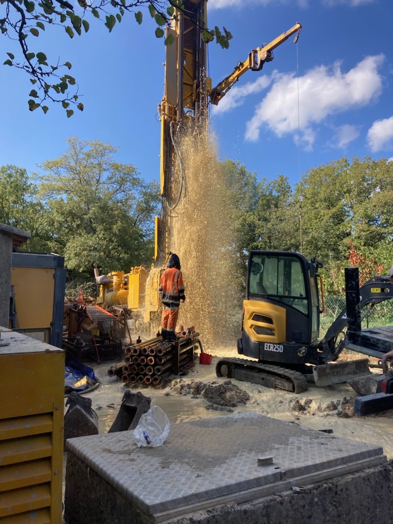 La première phase, qui a consisté à creuser le forage sur environ 80 mètres de profondeur, a nécessité certaines précautions afin de préserver les réserves stockées dans le château d’eau qui alimente toute la commune (hors forages).